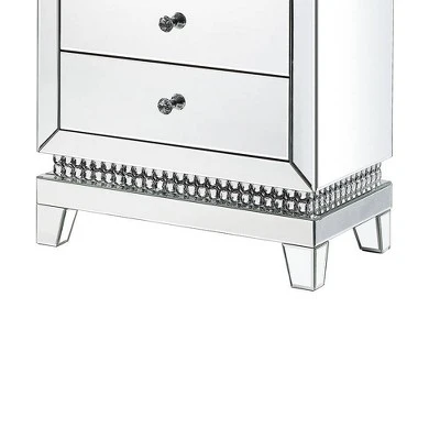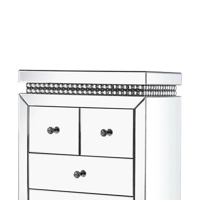 - This lovely cabinet is covered in a brilliant mirrored surface that reflects ambient light and visually expands the room.