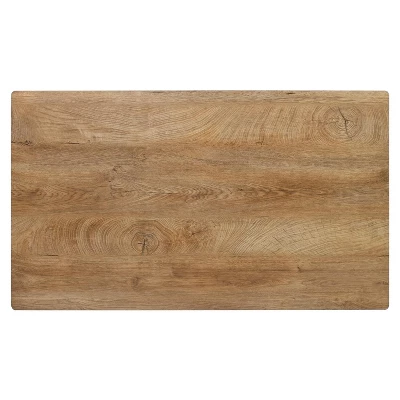 This simple, elegant dining table lets you serve up modern style in any space. It features a rectangular engineered wood top in a warm walnut tone, offering visible wood grain variation, chip and scratch resistance, and a distinctive contrast with its matte black steel flared legs. This tableâs generous 47âL x 27.5âD top surface offers enough room for six people to sit comfortably. It completes the look in any mid-century modern or contemporary dining area.