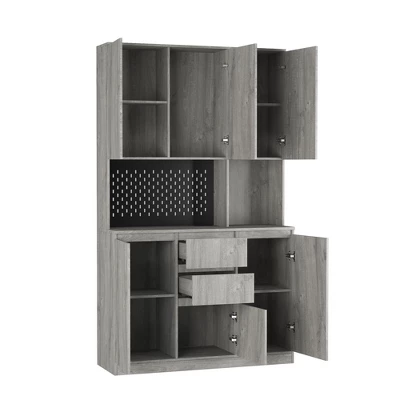 - Features 3 AC outlets + 2 USB ports for convenient device charging, paired with multiple door cabinets, a slide-out drawer, and an open countertop shelf to store appliances, tableware, and pantry itemsâall in a compact 43.66″W design.