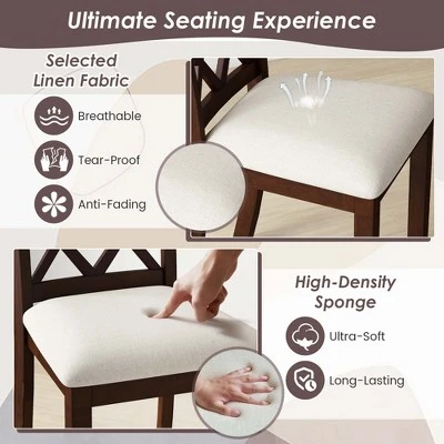 Experience the ultimate dining indulgence with our comfortable dining chair set. These kitchen chairs are thoughtfully designed with a 95° inclined backrest, providing a posture-friendly seating experience. The generously sized seat, crafted from breathable, tear-proof and anti-fading linen fabric and sponge, offers luxurious comfort. Built with a sturdy wood frame with natural rubber wood legs, these dinner chairs exhibit remarkable strength and stability, supporting a weight capacity of up to 400 lbs. With more user-friendly details, the painted design not only adds an aesthetic touch but also ensures a scratch-free surface, simplifying your daily cleaning routine. Assembling these dining chairs is a breeze with clear instructions.