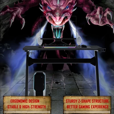 - Roomy Gaming & Working Space: The 45.5” x 23.5” desktop keeps all your game equipment or office supplies in order while creating a spacious area for E-sports gaming or working. What’s more, the desktop covered with carbon fiber texture is anti-scratch, smooth, waterproof and durable.