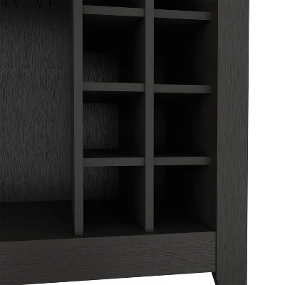 Discover the Gulches Black Bar Cabinet, a perfect blend of elegance and functionality. Featuring one open drawer, one open shelf, and six built-in wine racks, this cabinet offers ample storage for your favorite beverages and glassware. Crafted from FSC-certified materials, it ensures both style and sustainability for your home.