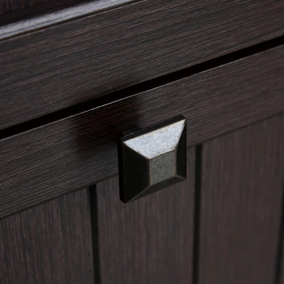 - Rustic Style: This office storage cabinet stands out for a rustic style. Classic wood grain veneered surface, slat-front detail, and elegant square knobs giving it a neutral aesthetic that can coordinate most decorations.