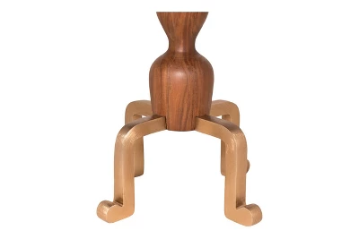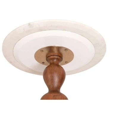 Elegant white marble topAcacia wood stained walnut wood columnMatte brushed iron legs with gold electroplatingUltra modern unique leg designAlso available in wood (sold separately)