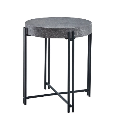 The Morgan end table presents modern industrial styling with a faux concrete top crafted of durable SilvershieldÂŽ that appears to be suspended on a black iron base with stylish X-style stretchers. The neutral mottled gray top also blends beautifully with today’s neutral interiors and is sure to bring a bold new look to any living area.