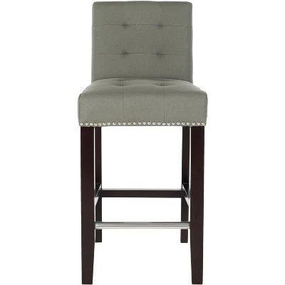 The Thompson Counter Stool offers classic design and sumptuous comfort for any interior. Featuring espresso finished birch wood legs and silver nail head trim, Thompson adds a touch of elegance to your bar or pub table. Care Instructions: To prevent overall soiling, frequent vacuuming or light brushing is recommended. Cushions and pillows should be turned on a weekly basis. Down filled cushions should be brushed rather than vacuumed. Spot clean, using a mild water free solvent or dry cleaning product. Only a professional cleaner should undertake a complete overall cleaning. The use of steam or water based cleaners may cause excessive shrinking or staining.